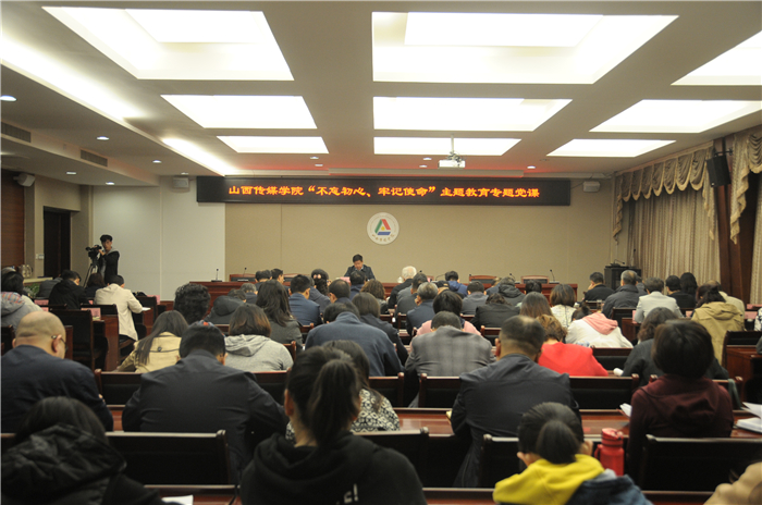 王亦农围绕深刻认识“不忘初心、牢记使命”的精神实质和科学内涵、正视成绩和问题,勇担新时代传媒高等教育的新使命、紧盯“关键少数”,为学校发展提供坚实的组织保障三方面主要内容进行讲授。